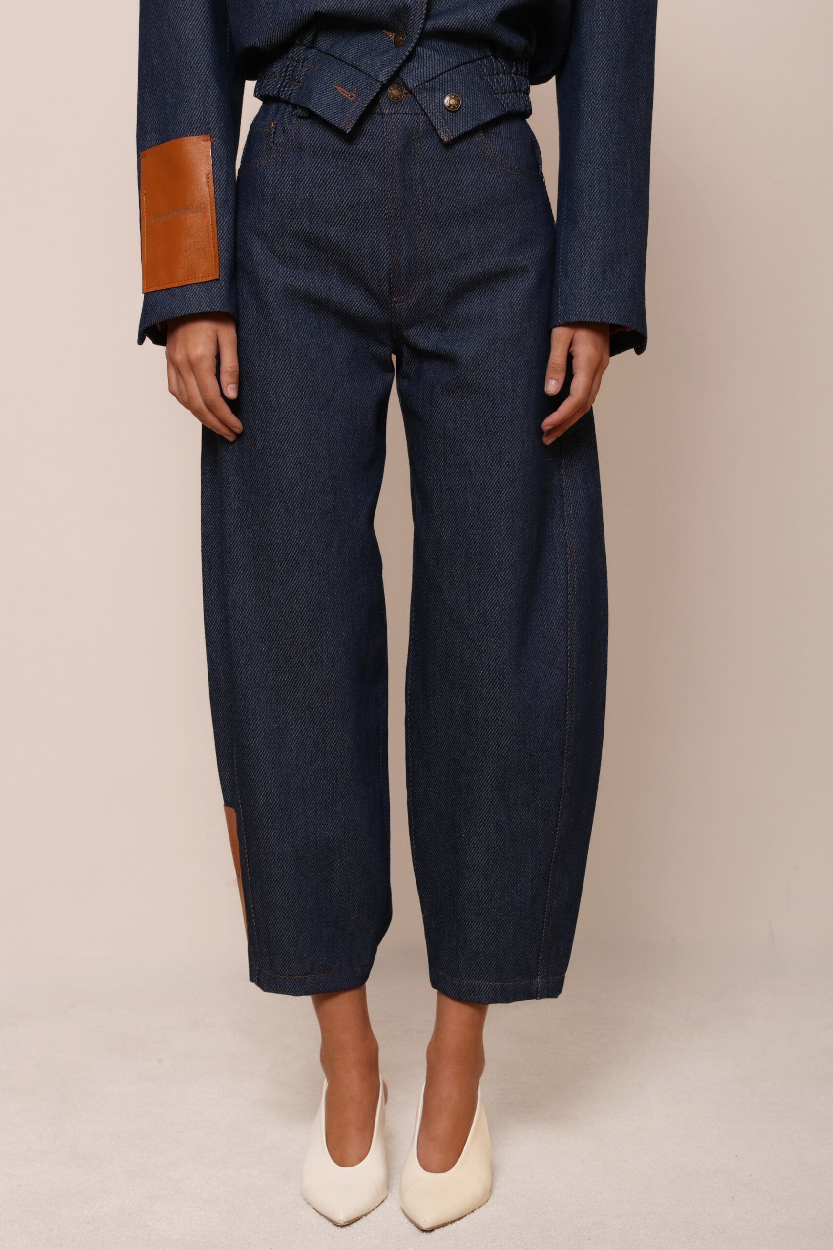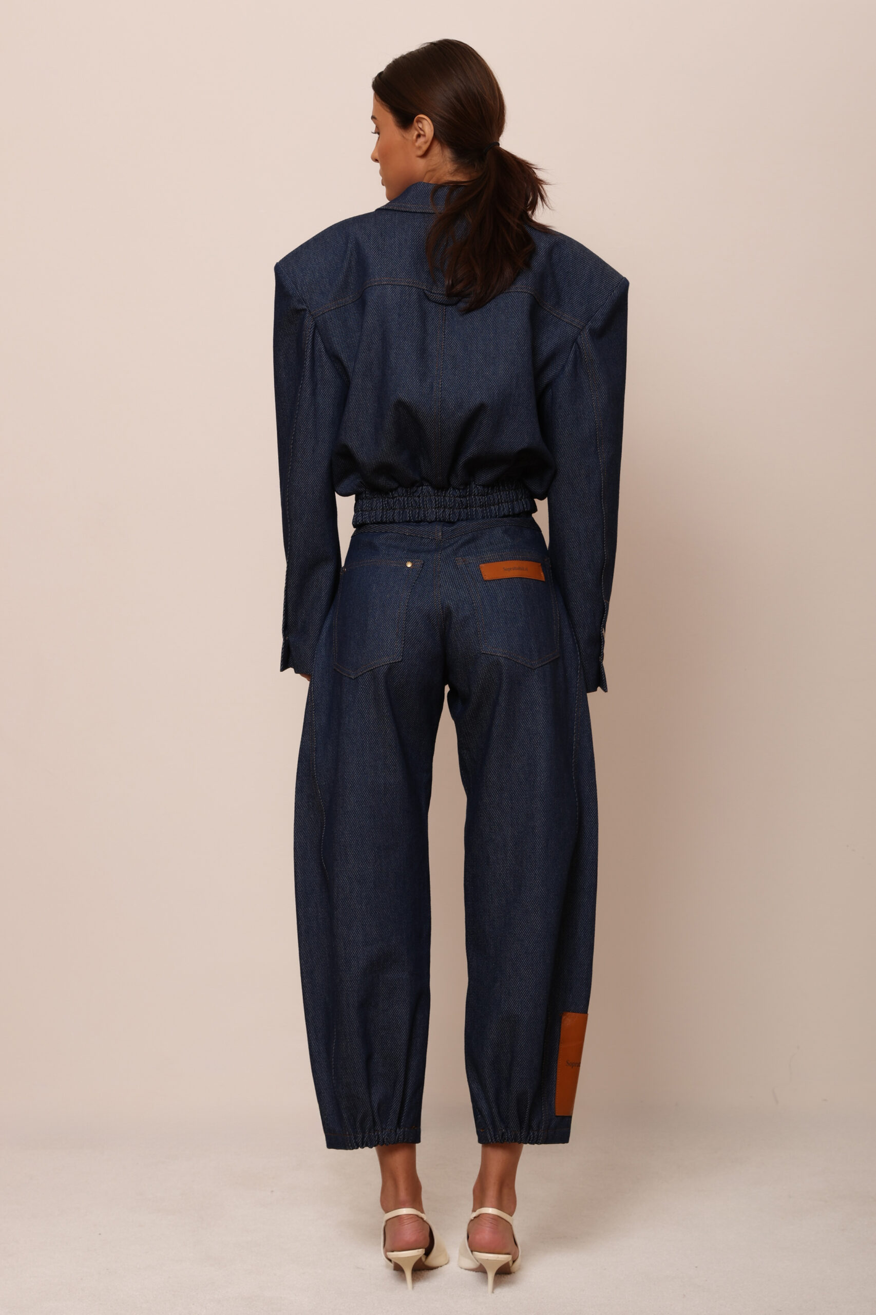 HIGH-WAISTED TROUSERS BALANCE THE LOOK WITH A RELAXED STRAIGHT CUT, CREATING AN EFFORTLESS YET COMMANDING SILHOUETTE.