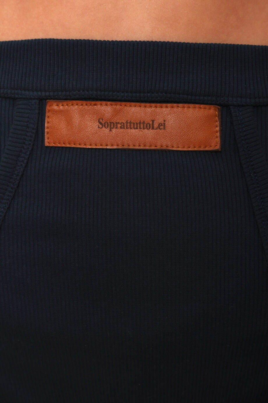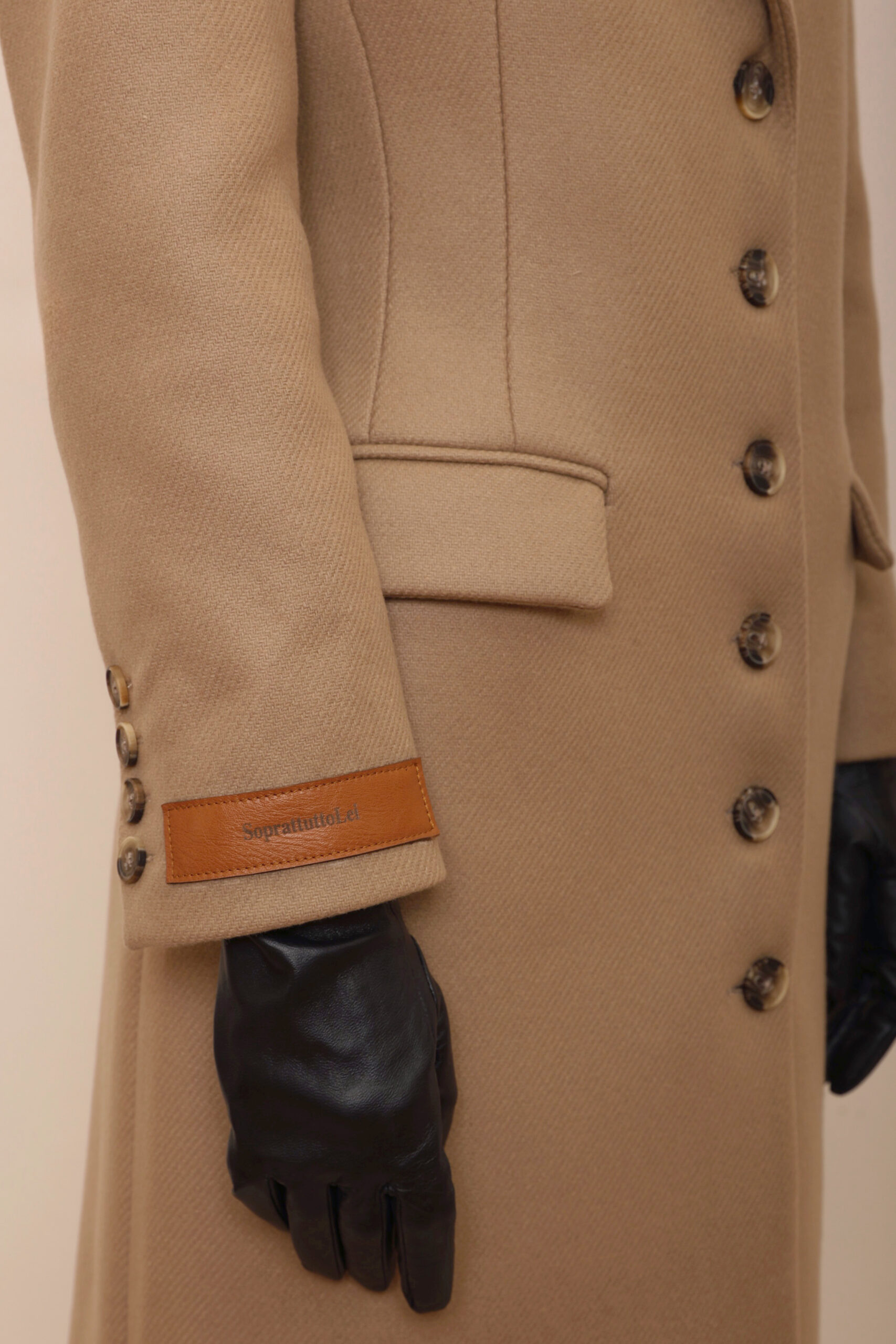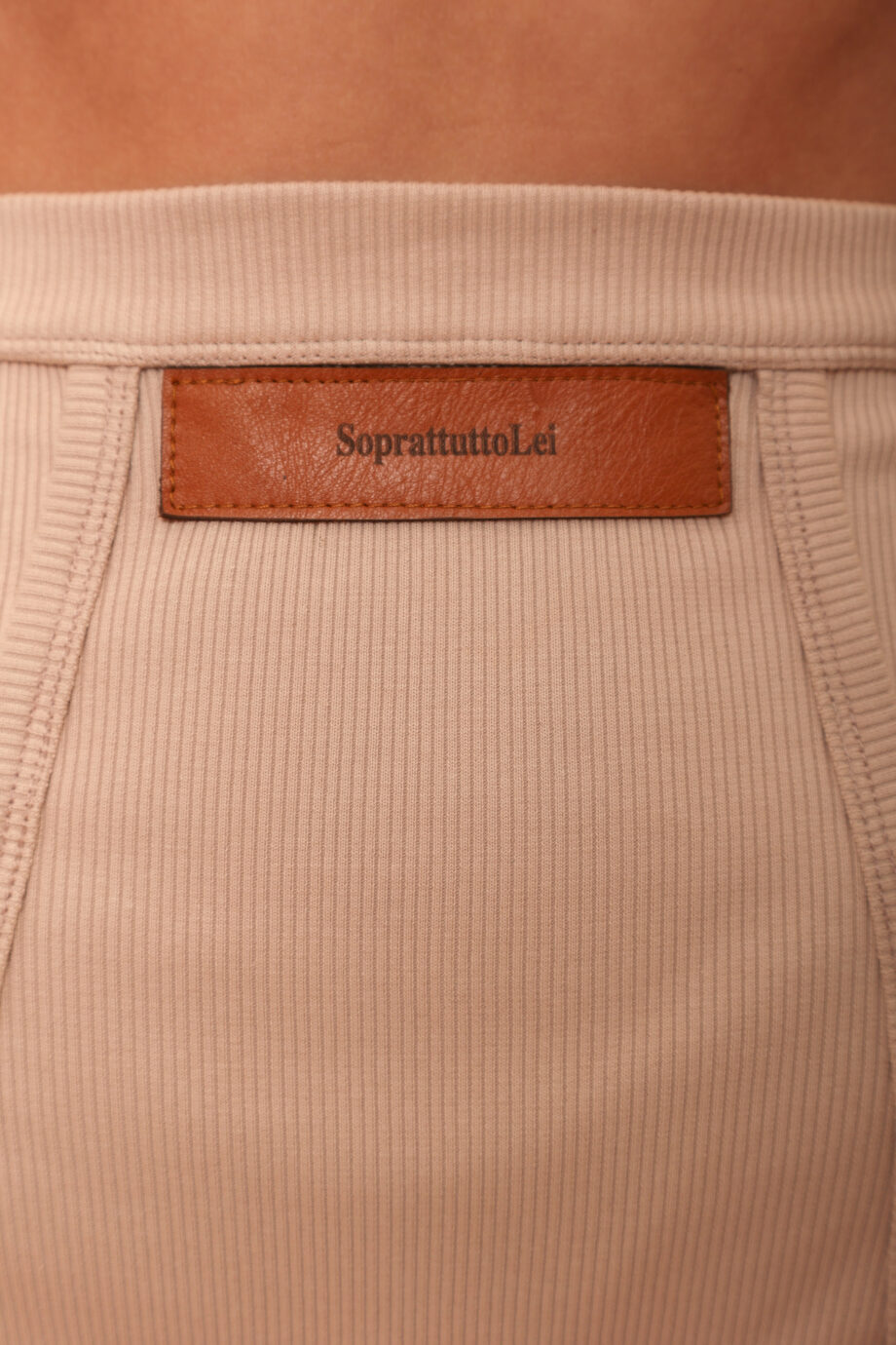A SIGNATURE LEATHER DETAIL ON THE SLEEVE, EMBOSSED WITH “SOPRATTUTTOLEI,” ADDS A DISTINCT TOUCH OF LUXURY.